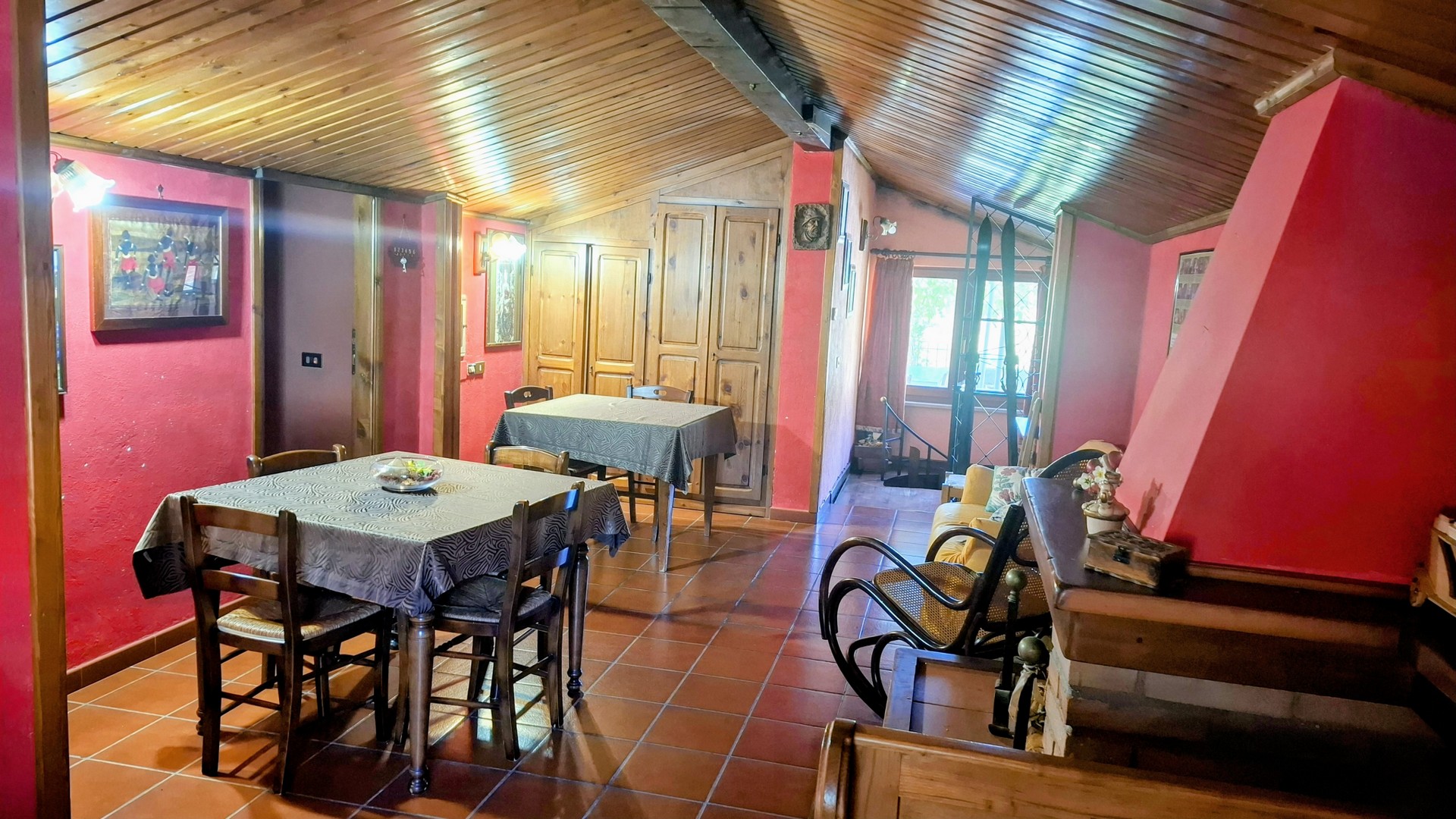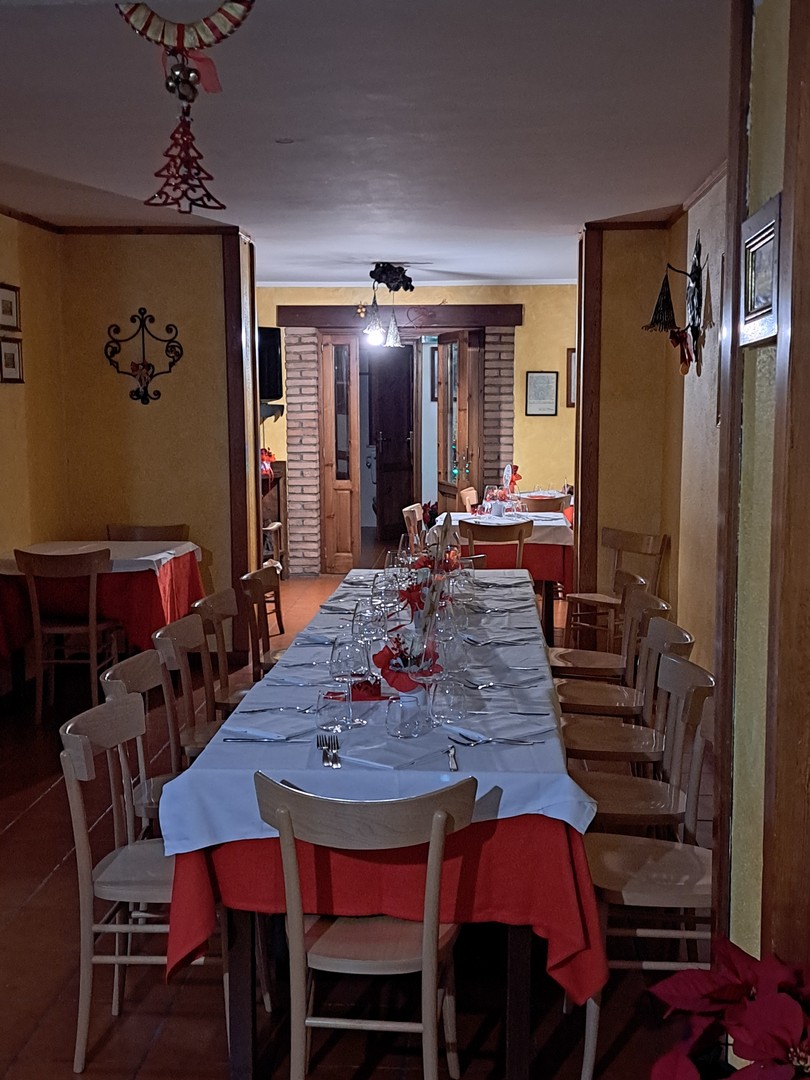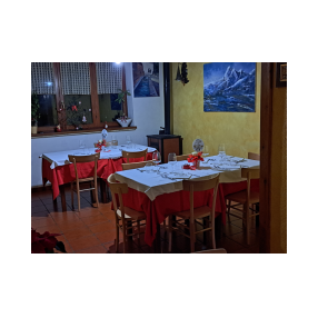 La sala ristorante con camino, può ospitare fino a 30 coperti interni.